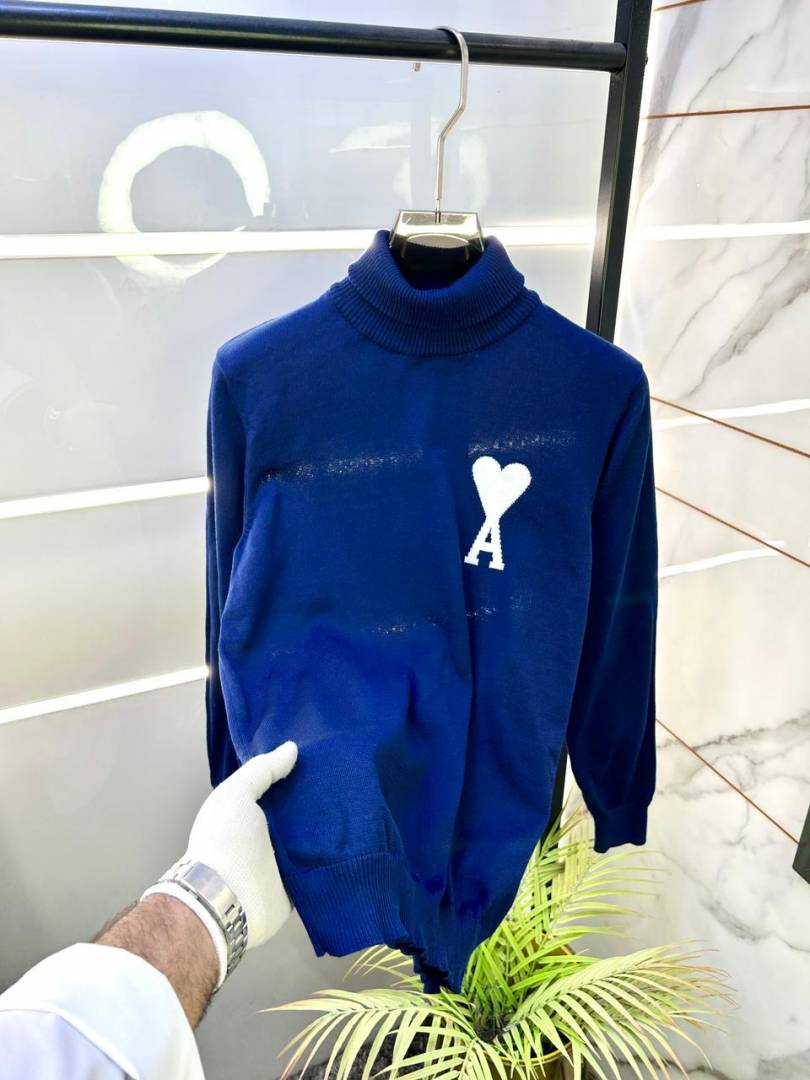 Ami Logo Imported Navy High Neck Premium Pullovers F3391-NY