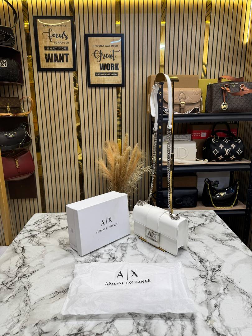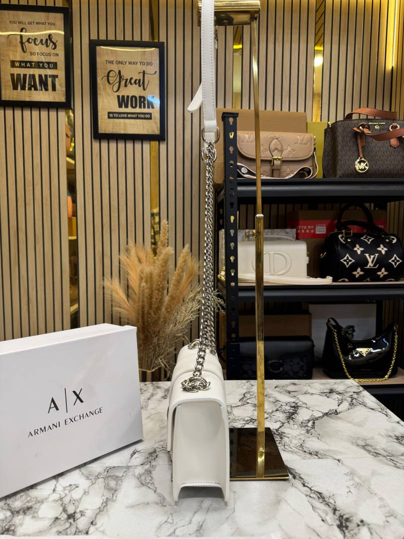 Arman_i Exchange AX Logo Chain Crossbody Bag With Box And Dust Bag (White - 423)