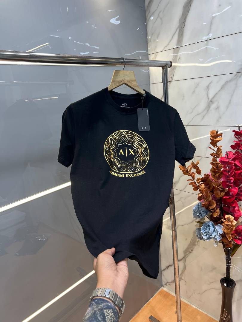 Arman i Exchange Black Premium Imported Cotton Lycra Fabric Round Neck with Front Design Sale Offer 1002