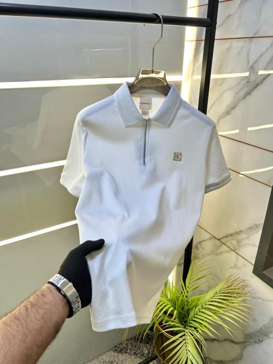 Calvin_Klein White Zipper Collar Neck Premium Polo T-shirt F3514-W1