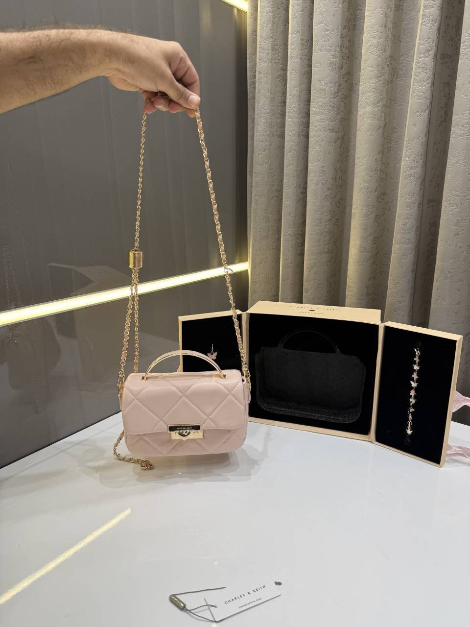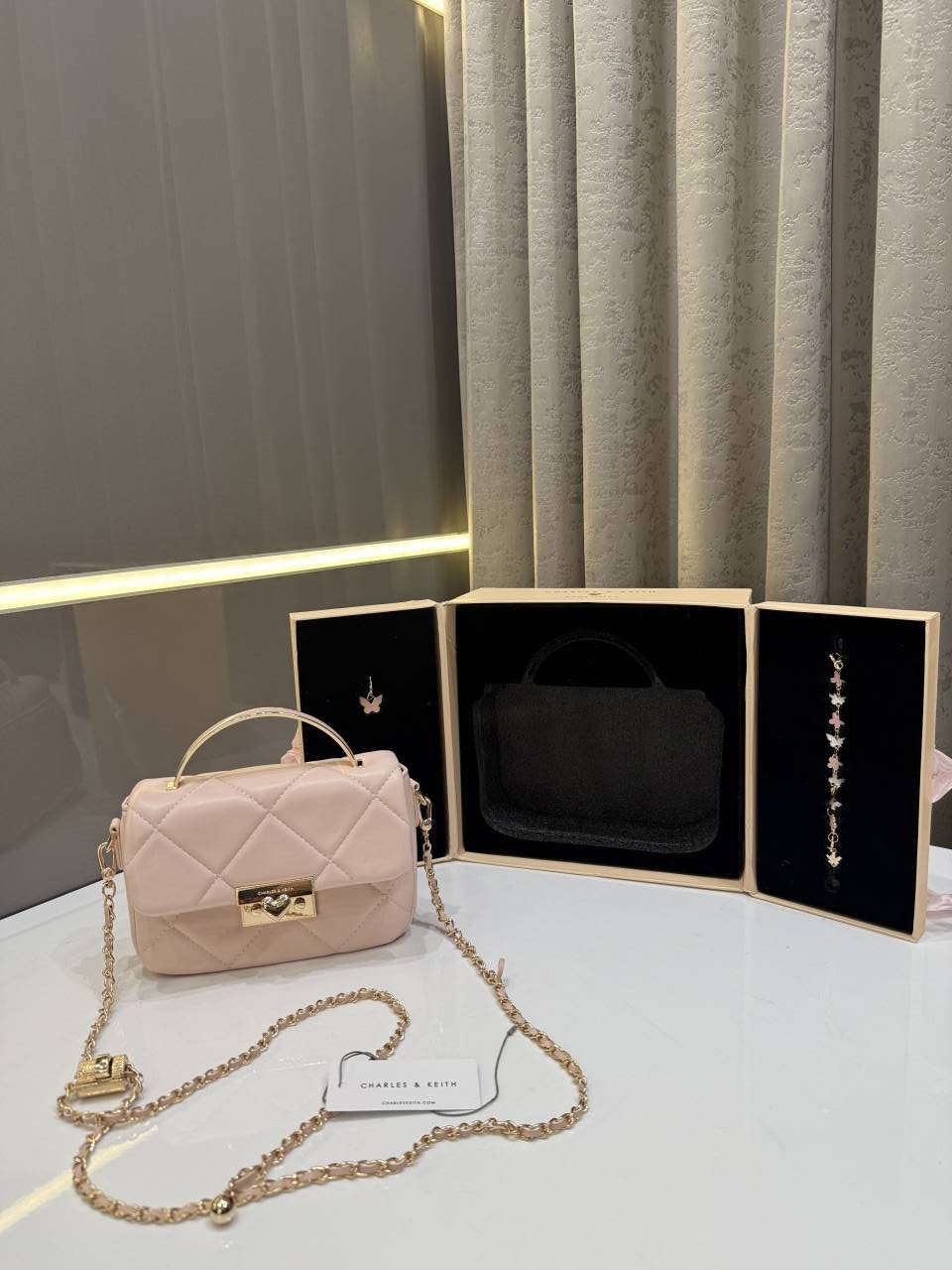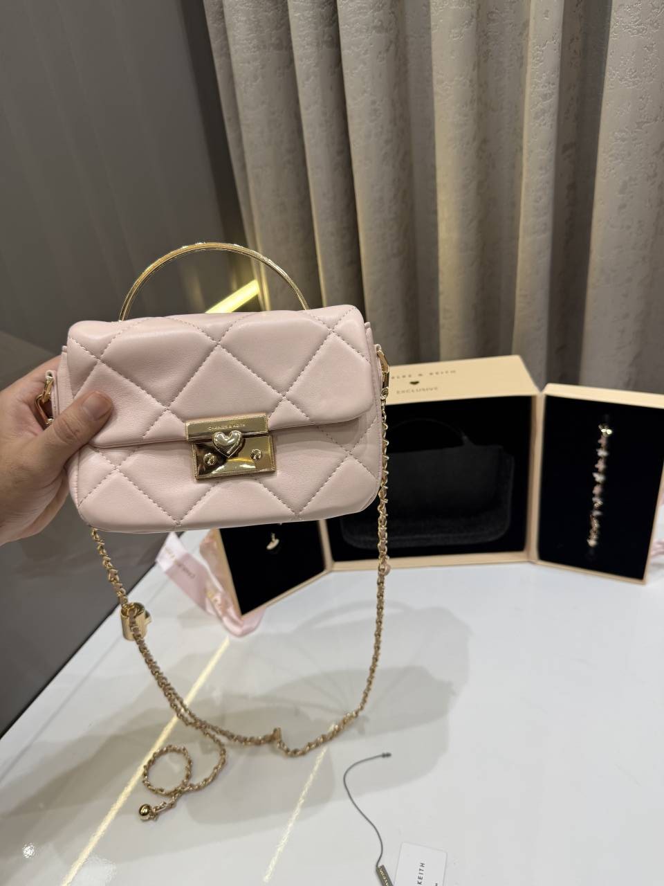 CHARLE.S KEITH PINK PREMIUM HEART CHAIN BAG WITH OG GIFT BOX