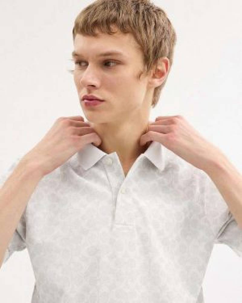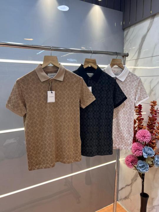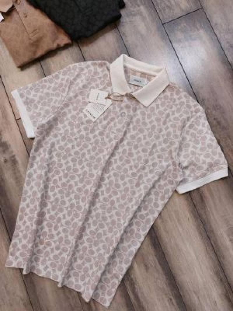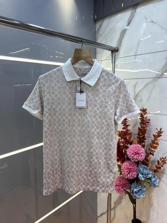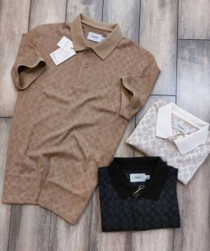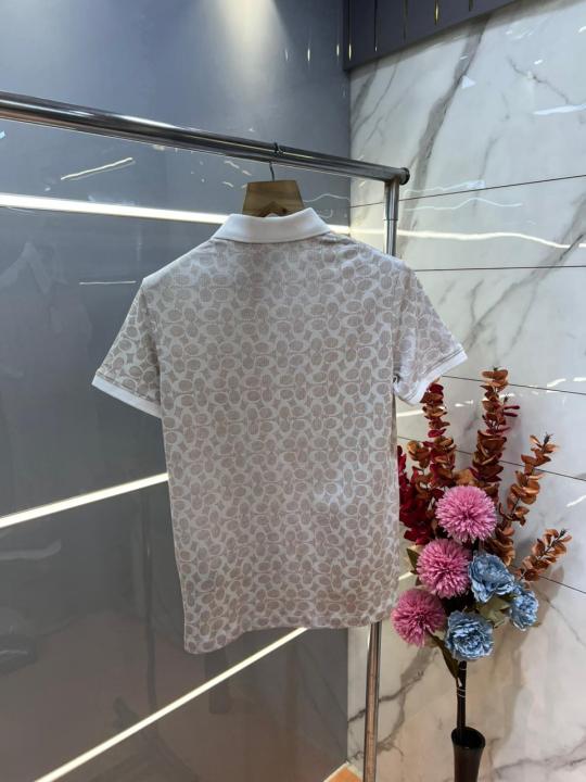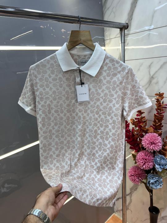 Coac H White Premium Imported Compact Yarn 240 GSM Interlock Fabric Polo Tshirt All Over Monogram 3082