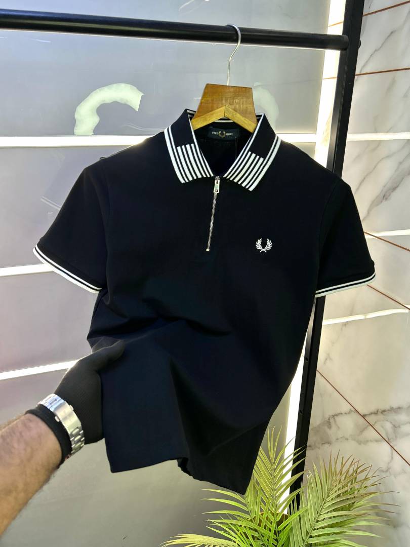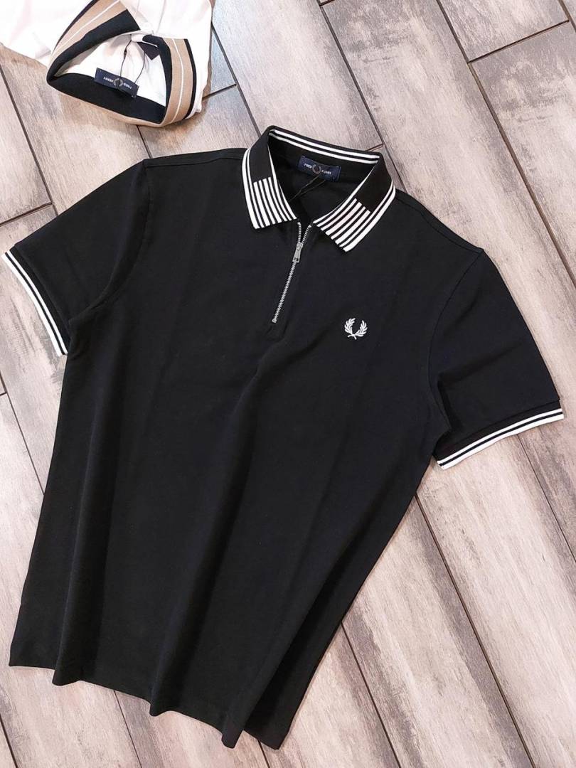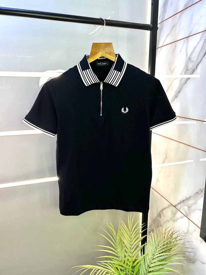 Fred Perry Black Zipper Polo Premium Collar Neck T-shirt F2872-BL