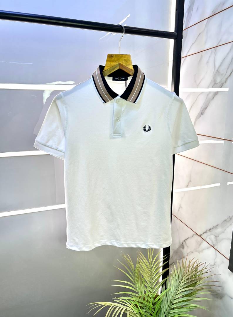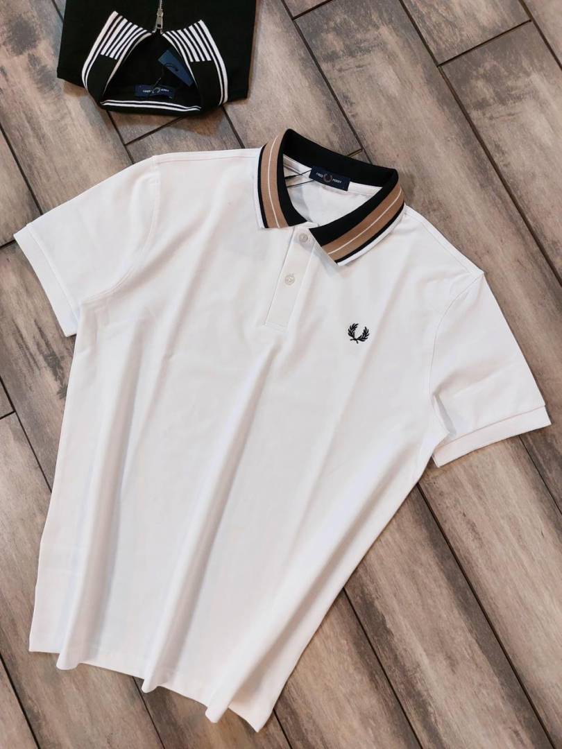 Fred Perry White Polo Premium Collar Neck T-shirt F2872-WH