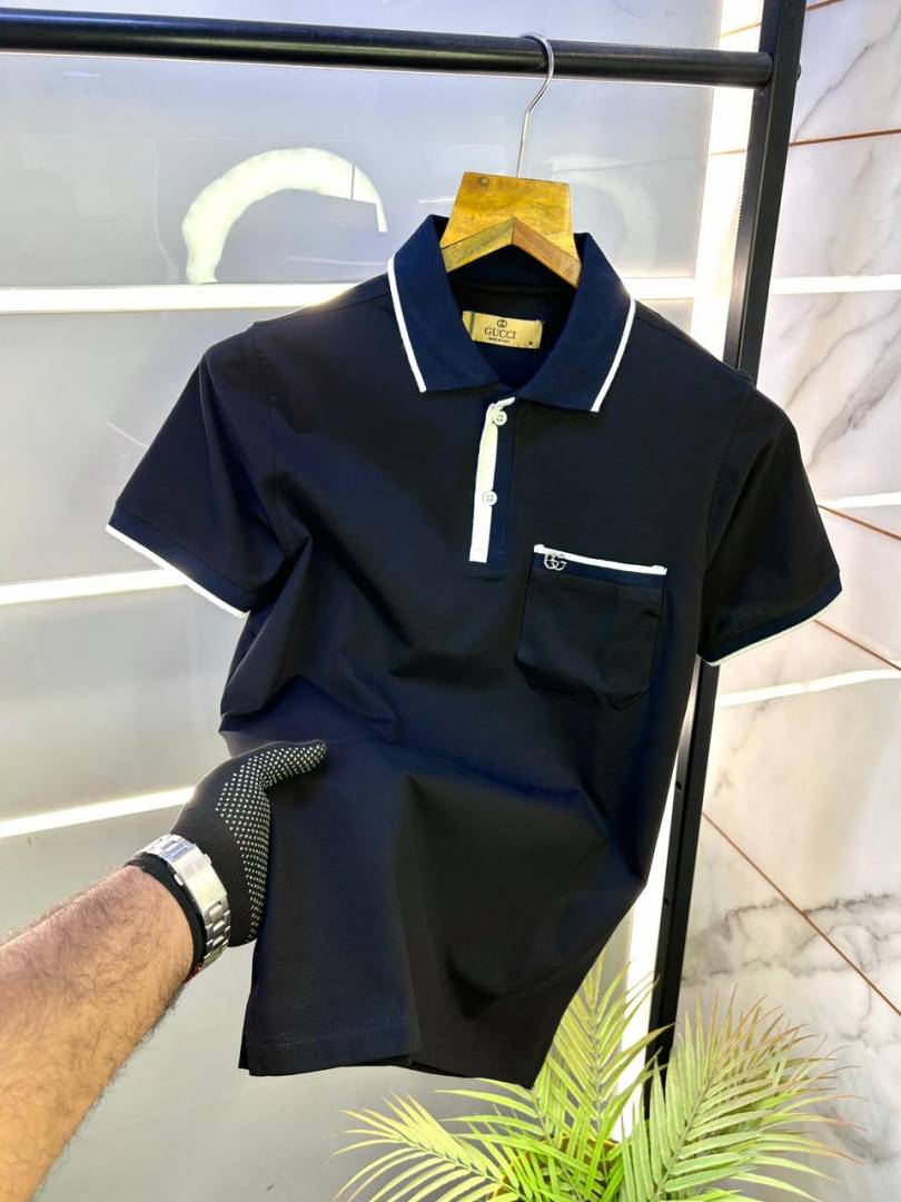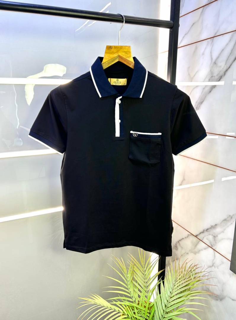Gucc i Black Premium Collar Neck Polo T-shirt F2952-BL