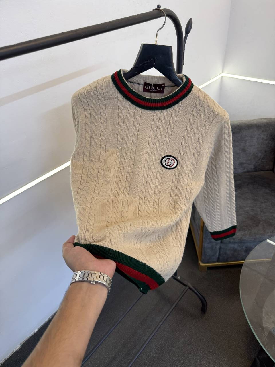 ? *Gucci imported knitted sweater with branded rib and logo on chest now in stock*?