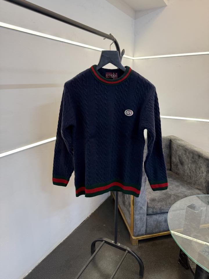 ? *Gucci imported knitted sweater with branded rib and logo on chest now in stock*?