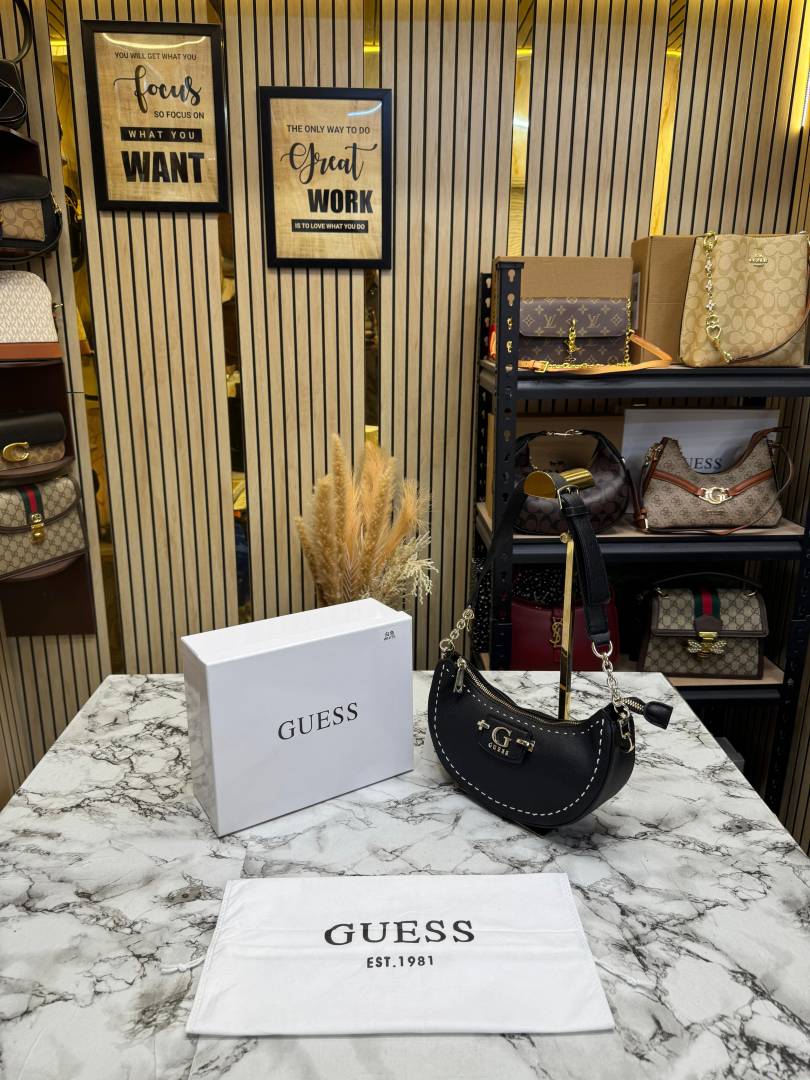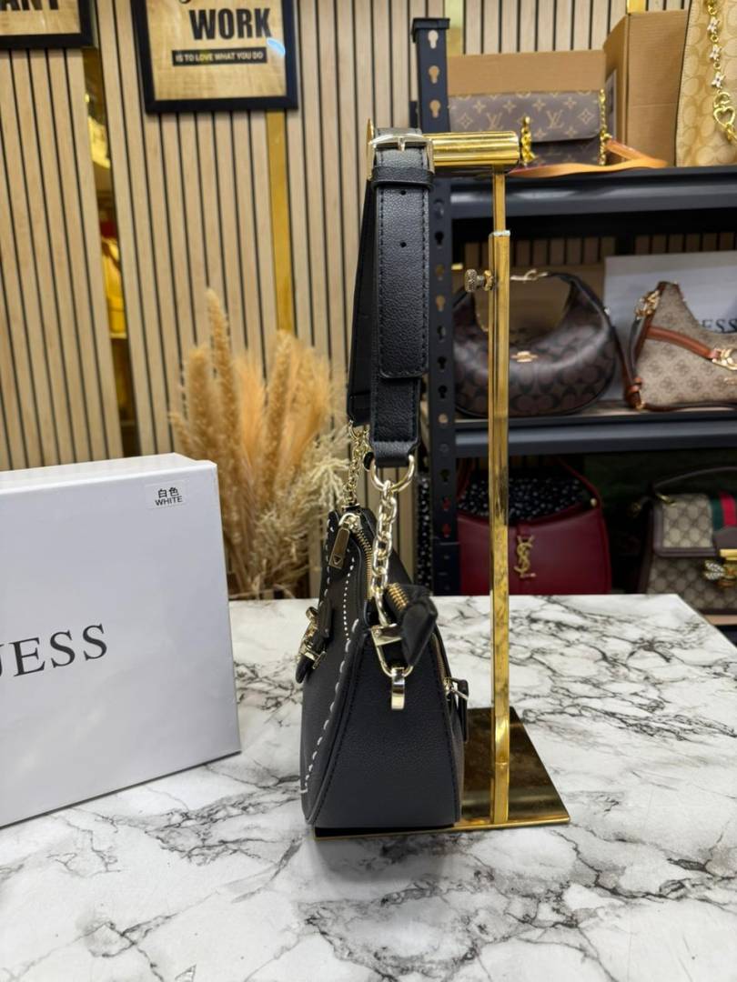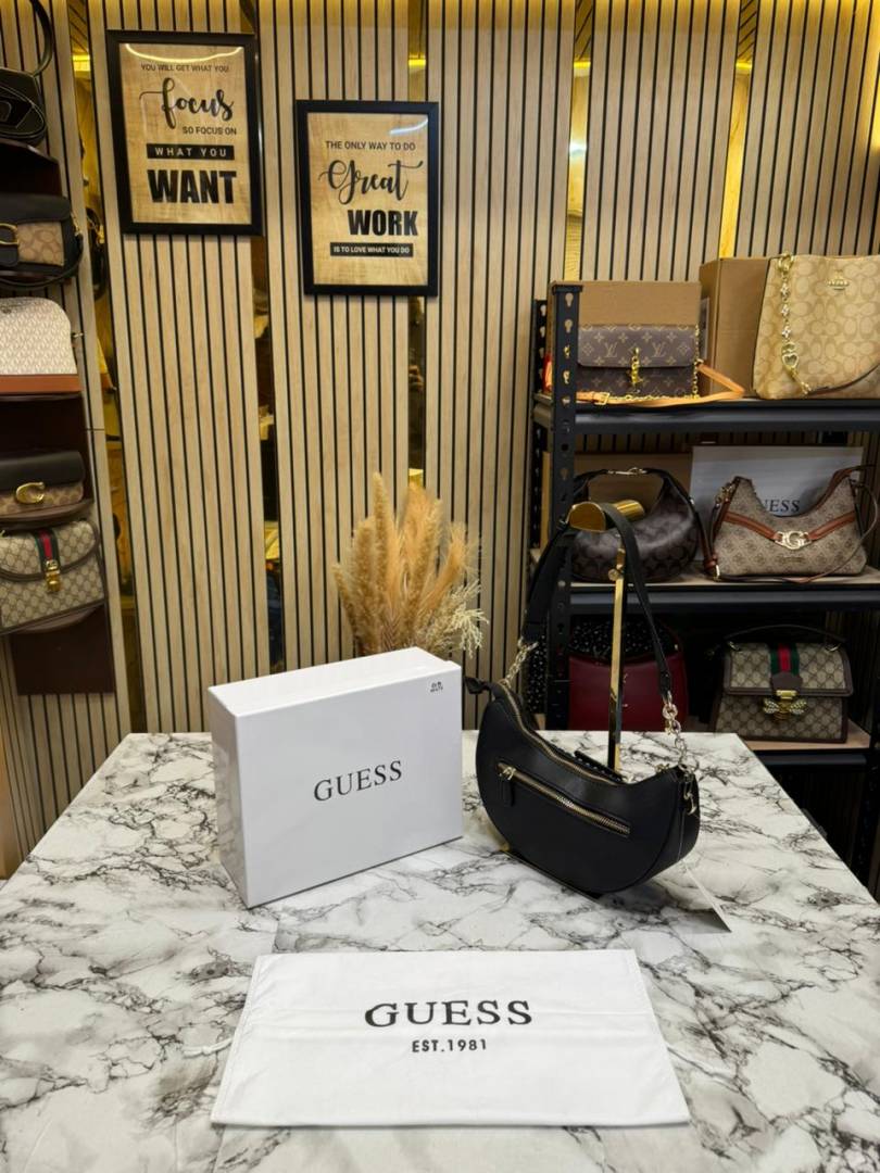 Guess Nastra Top Zip Shoulder Bag With Box And Dust Bag (Black)