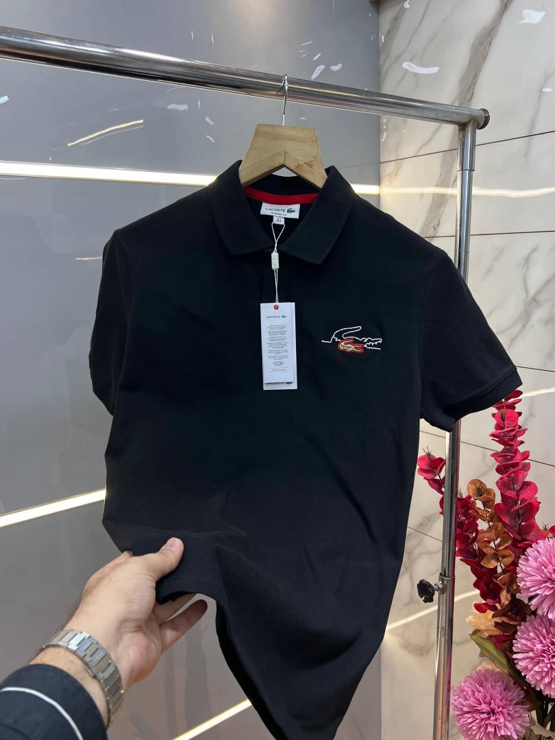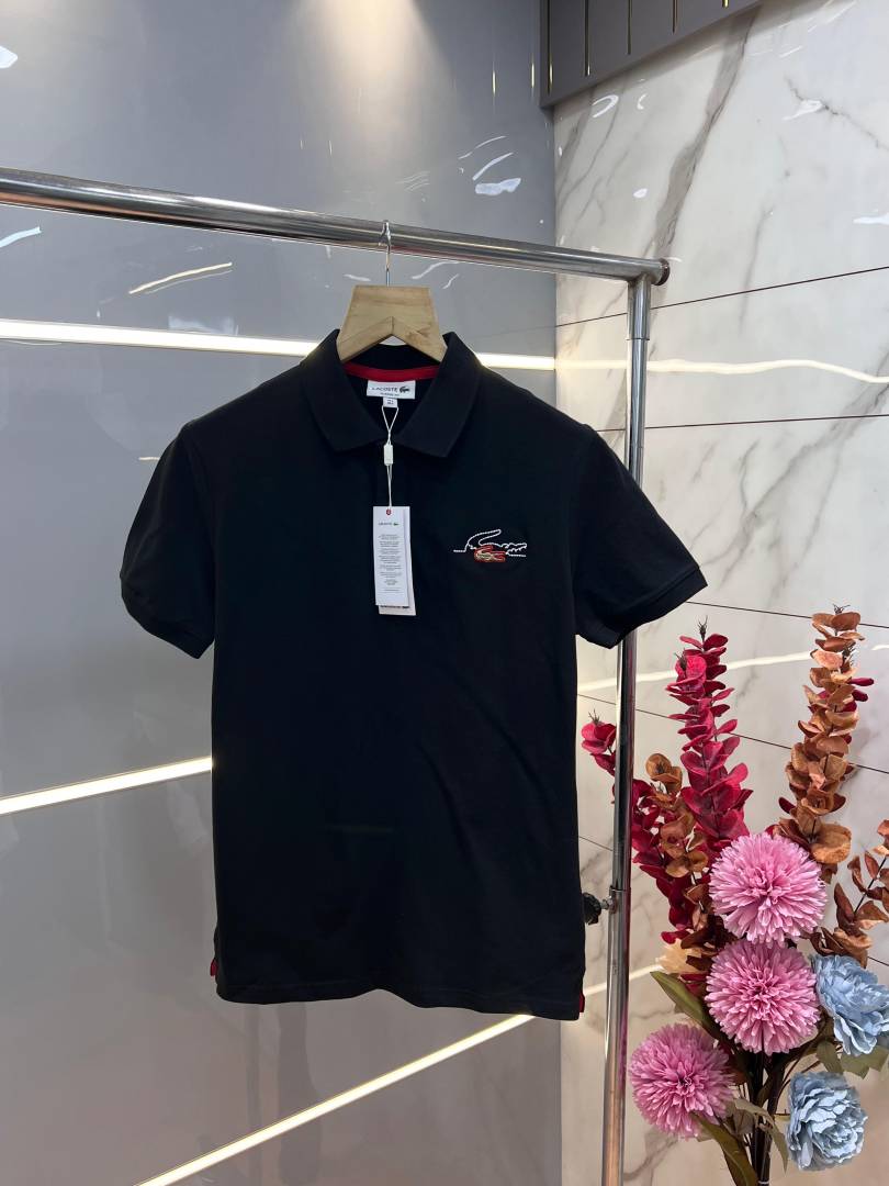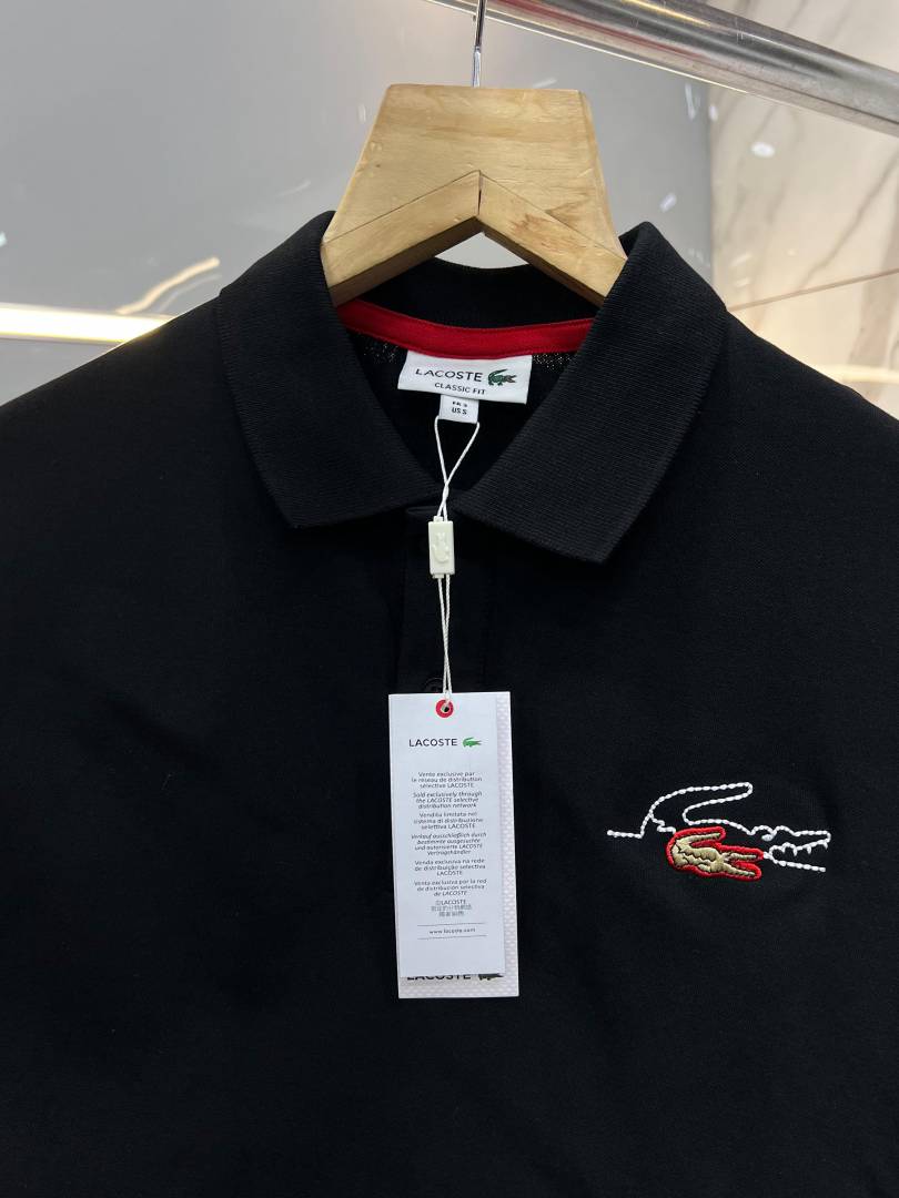 Lacost e Black Premium Cotton Pique fabric Polo Tshirt with Embroidered Logo 3461