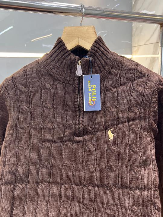 Ralph Laure n Chocolate Premium Imported High Neck Knitted Pullover Half Zipper Style 3571