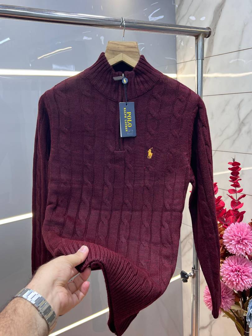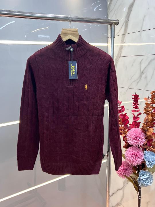 Ralph Laure n Maroon Premium Imported High Neck Knitted Pullover Half Zipper Style 3573