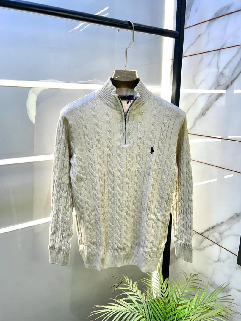 Ralph Laure n Cream Premium Imported High Neck Knitted Pullover Half Zipper Style 3572