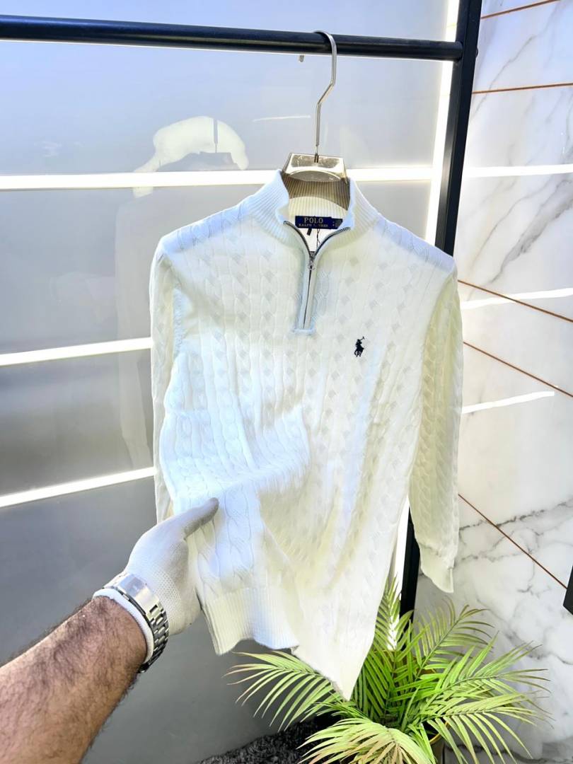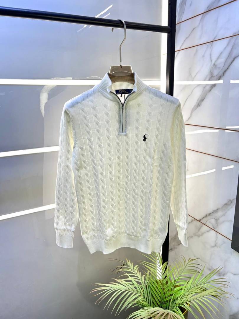 Ralph Laure n Cream Premium Imported High Neck Knitted Pullover Half Zipper Style 3572