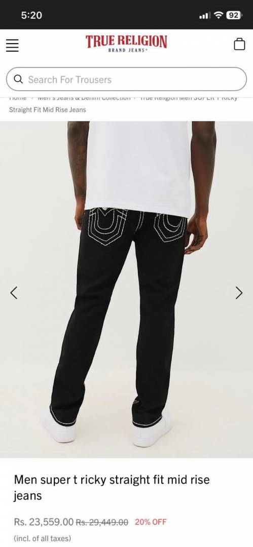 True Religio n Light Shade Premium Imported Stretchable Lycra Fabric Straight fit Denim with Back Flap pocket Design 3435
