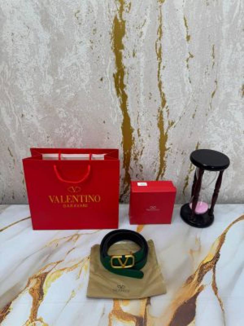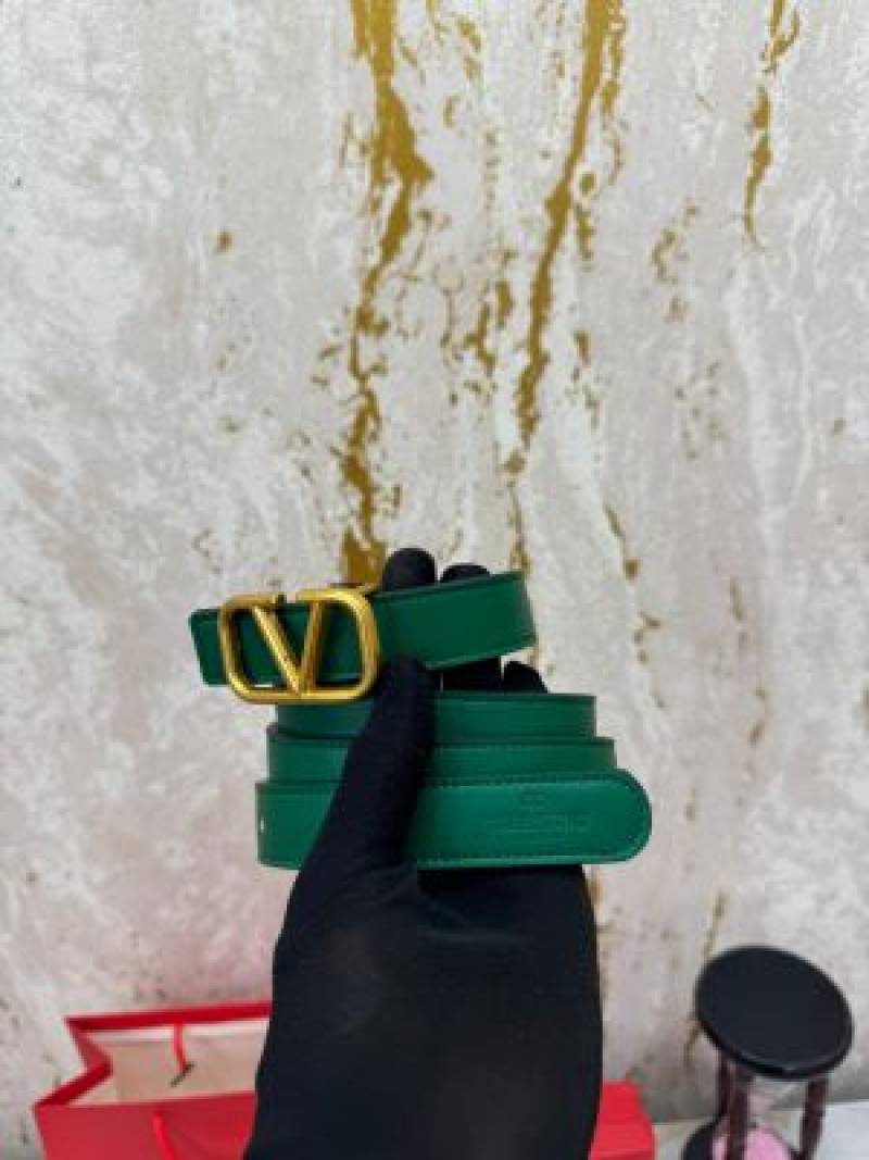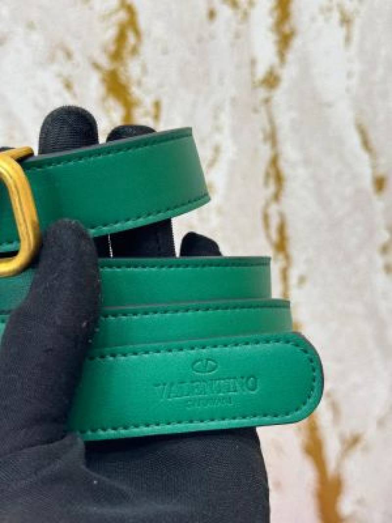 Valentin_o Garavani Leather Belt V-Logo Buckle With Box And Dust Bag Including Carry Bag (Green-v37)