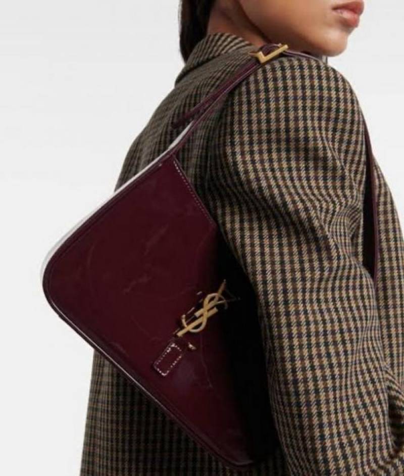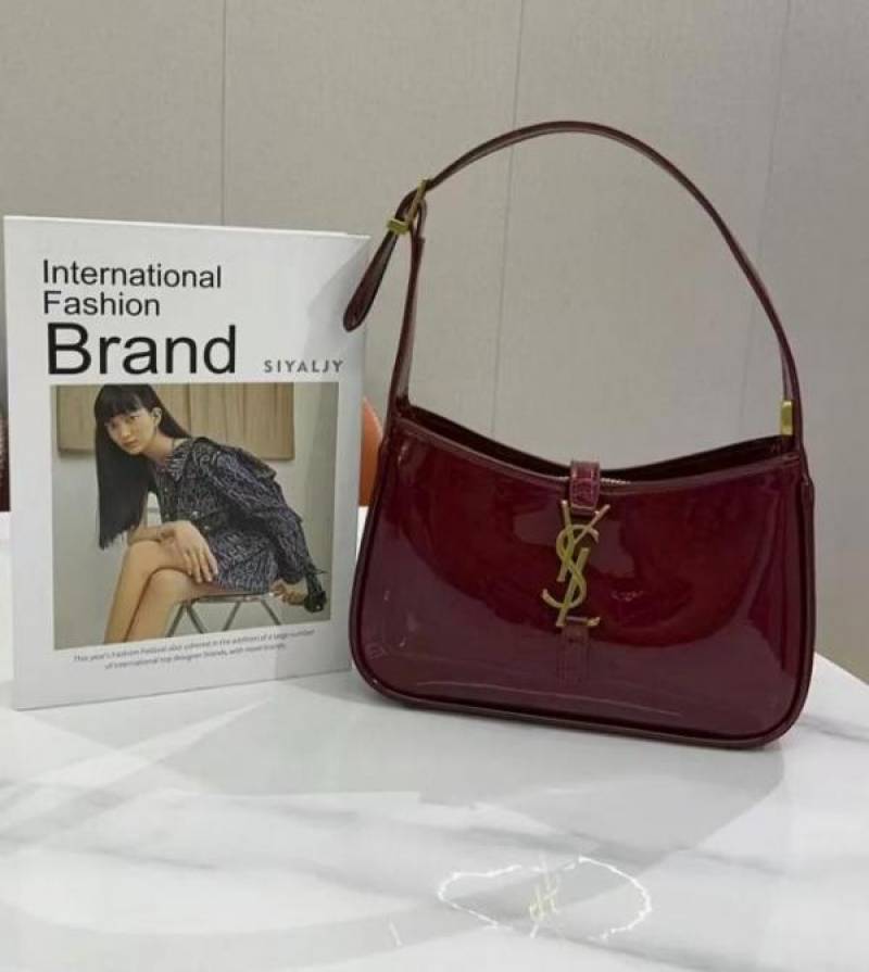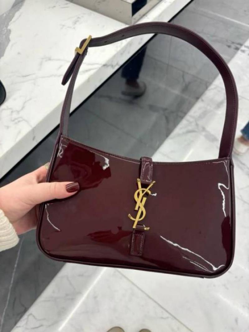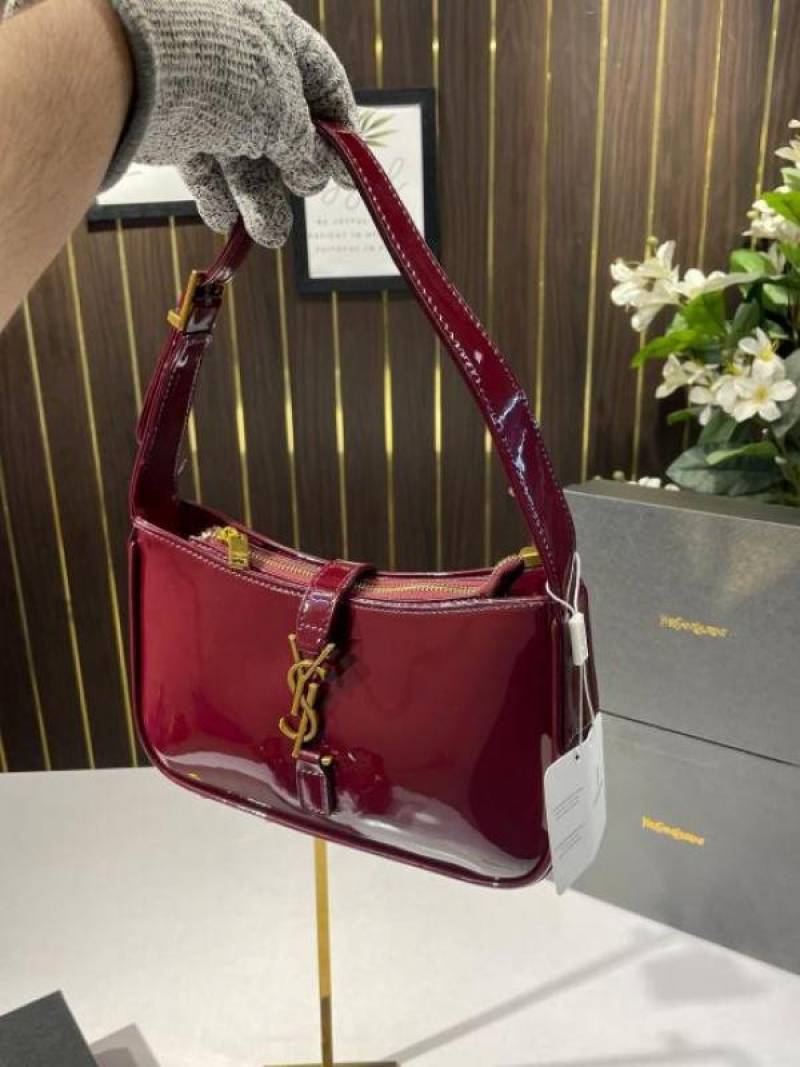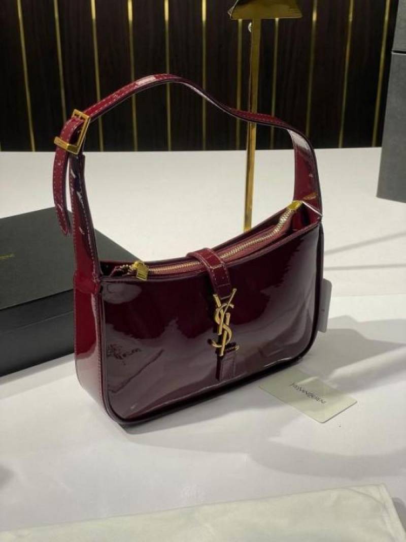 Ysl patent hobo bag glossy with og box (903-2-mirror-burgundy))